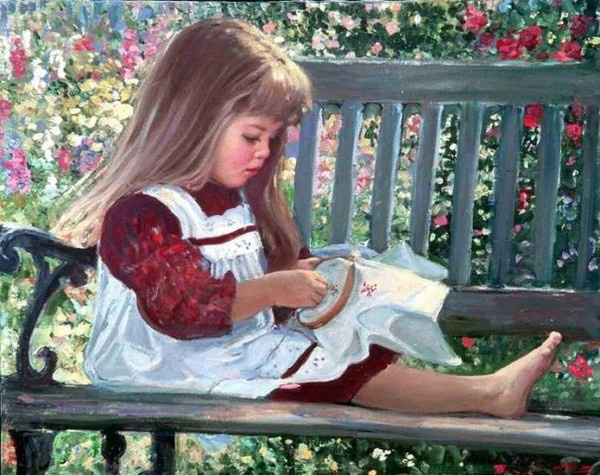 Уже с двухлетним ребенком можно попробовать вышивать вместе. Посадите кроху к себе на колени, вводите иголку с изнаночной стороны, а малыш пусть выводит нитку наверх. Во-первых, ребенок будет рад сделать что-то «как мама». Во-вторых, пять минут сосредоточенного пыхтения, и ребенок потеряет интерес. Ему захочется вернуться к привычным подвижным играм. А у мамы появится минут 10-15 на спокойное вышивание.